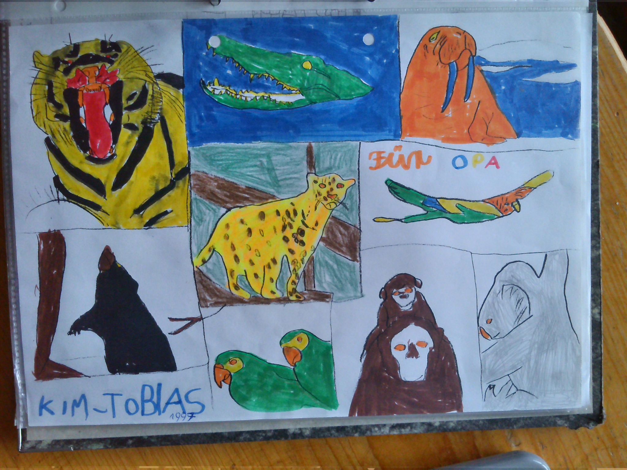 Die meisten Zeichnungen, vor allem die schönsten (Giraffe usw.), sind von Janice. :)